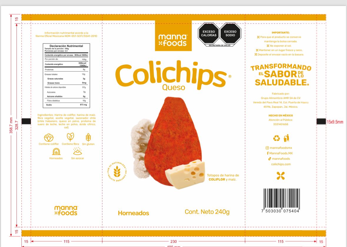 MANNA FOODS BOLSA QUESO COLICHIPS 240 G
