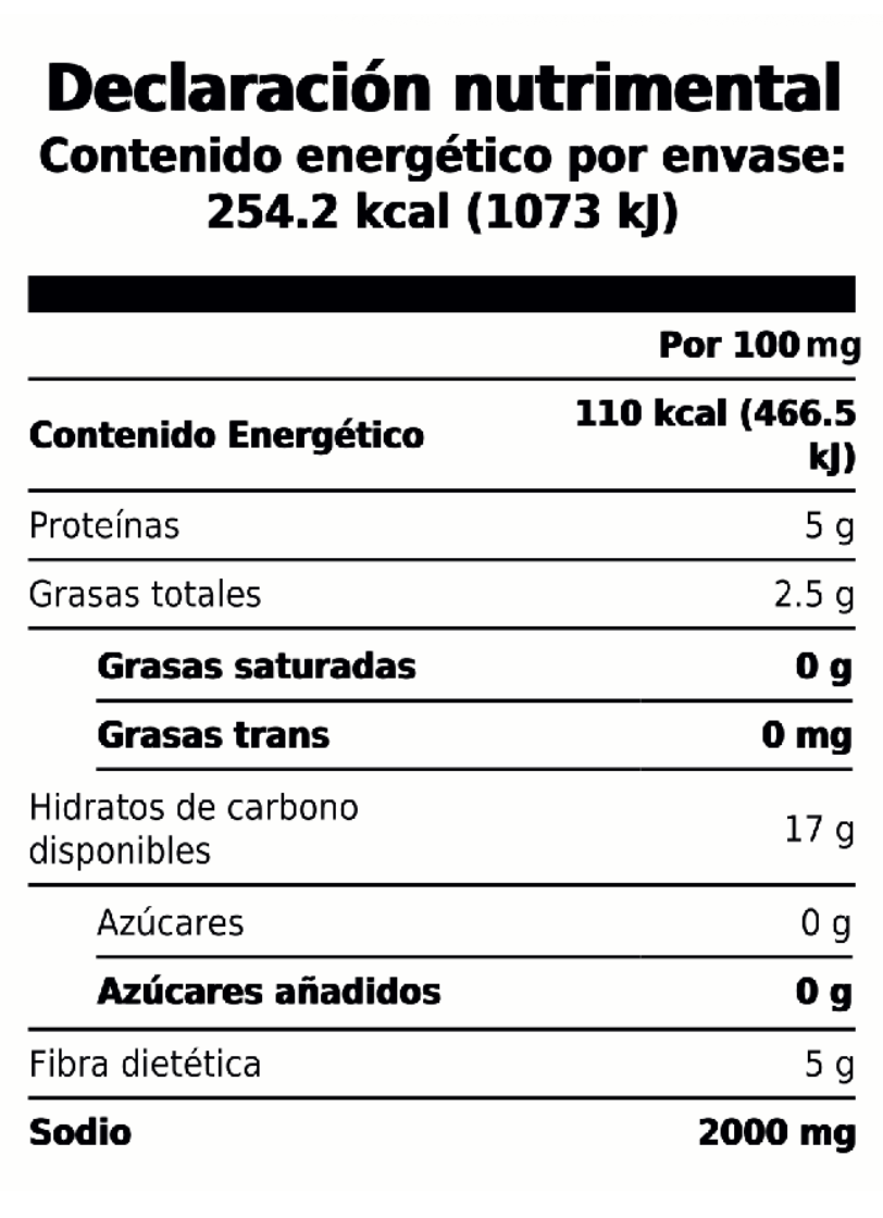 Tabla nutrimental: