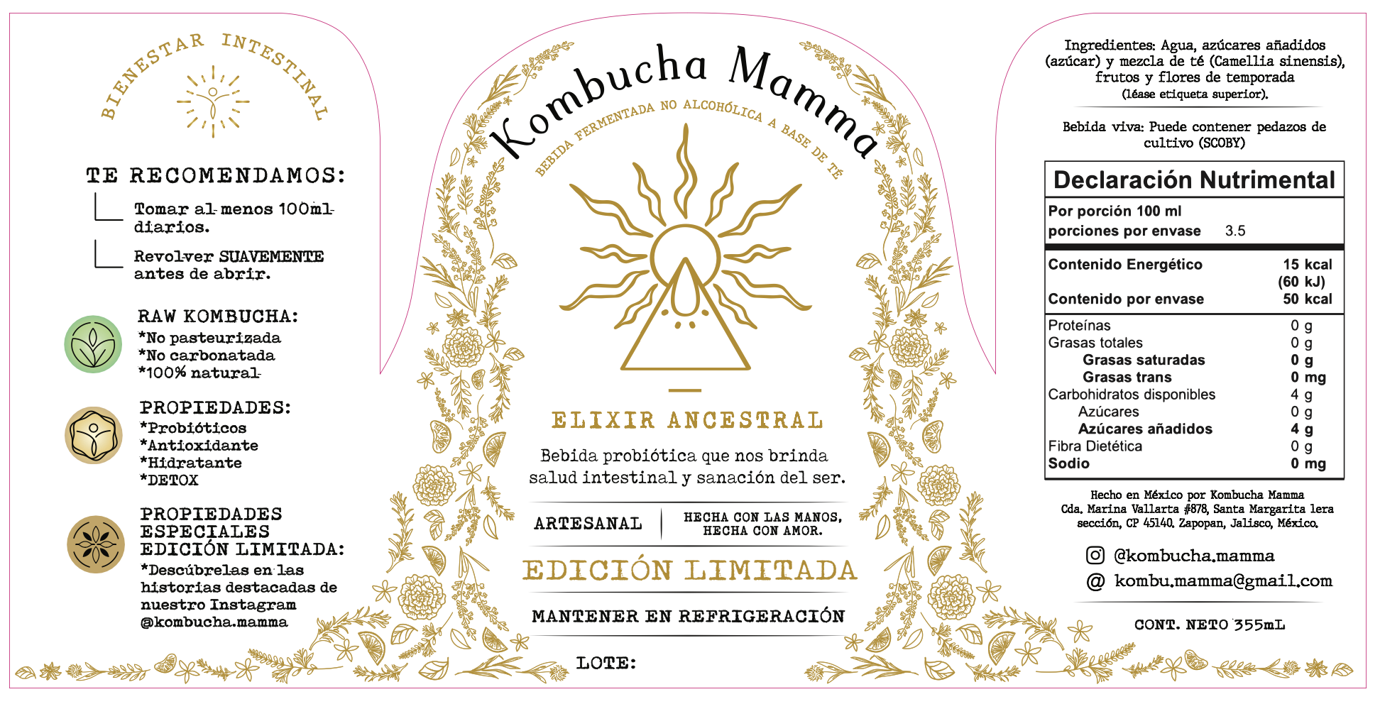 La Kombucha es una bebida fermentada no alcohólica, basado en té y azúcar, fermentado por el SCOBY (Cultivo simbiótico de bacterias y levaduras). Este elixir aporta probióticos, antioxidantes, ácidos orgánicos que promueven la desintoxicación, ayuda a levantar el sistema inmunológico y auxilia al sistema digestivo para una mejor absorción de nutrientes , acelerar el metabolismo y promover la desinflamación.
