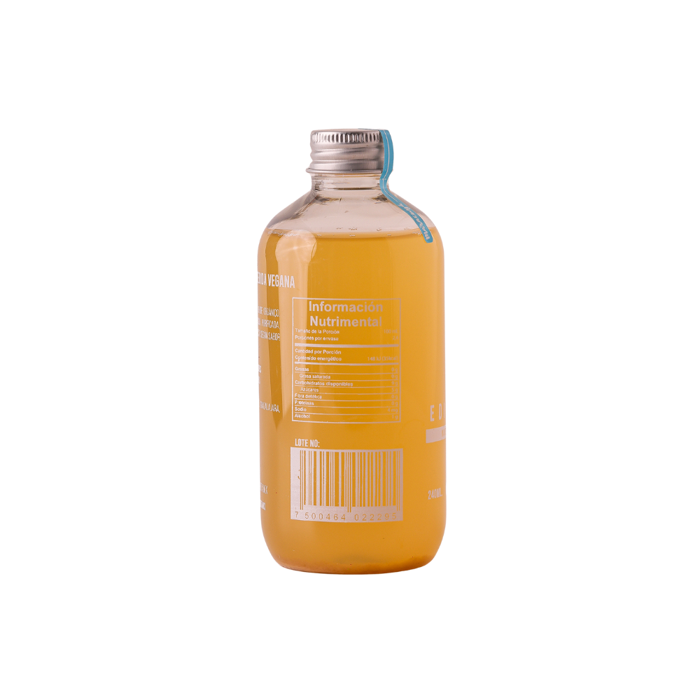 El proceso de fermentación dura 3 semanas, con el cual, el azúcar es reducido un 45% y el resto es transformado en probióticos (microorganismos vivos que favorecen a la microflora en el intestino), ácidos, vitaminas, minerales, enzimas y dióxido de carbono logrando una alquimia deliciosa, baja en azúcar y con grandes beneficios a la salud digestiva e inmunológica.