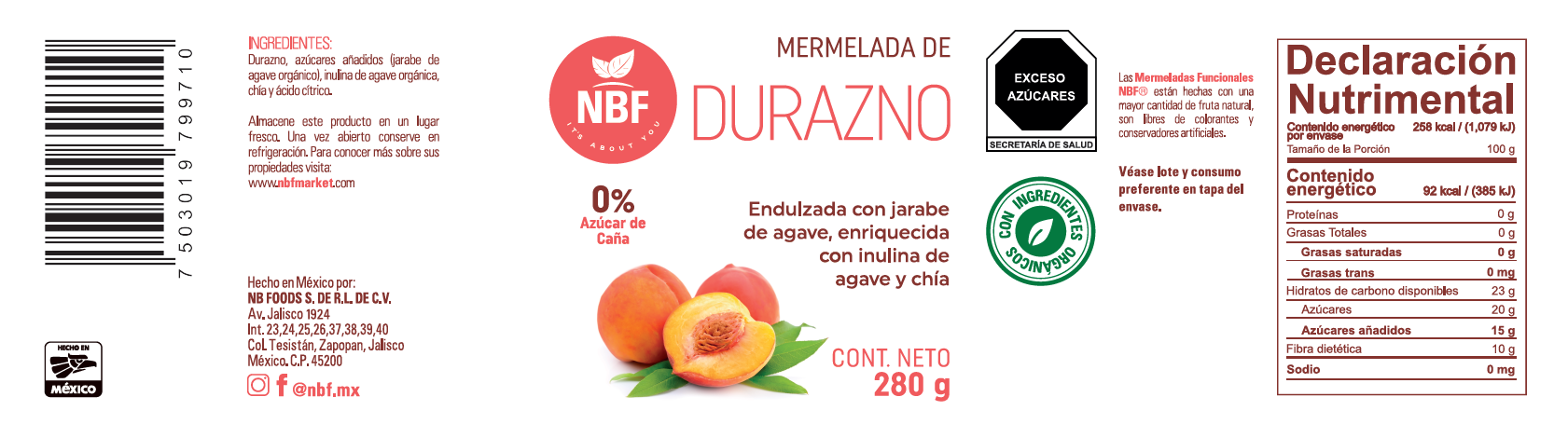 NBF DURAZNO MERMELADA 280 G