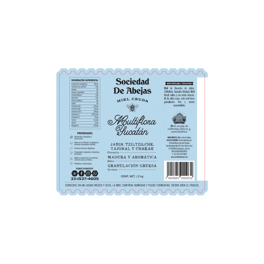 Miel cruda de colmenas sustentables, proveniente de la floración de Jabin, Tziltzilche, Tajonal y Chakah. De la región de la selva maya, esta miel tiene granulación gruesa, aroma acaramelado y sabor maduro.
