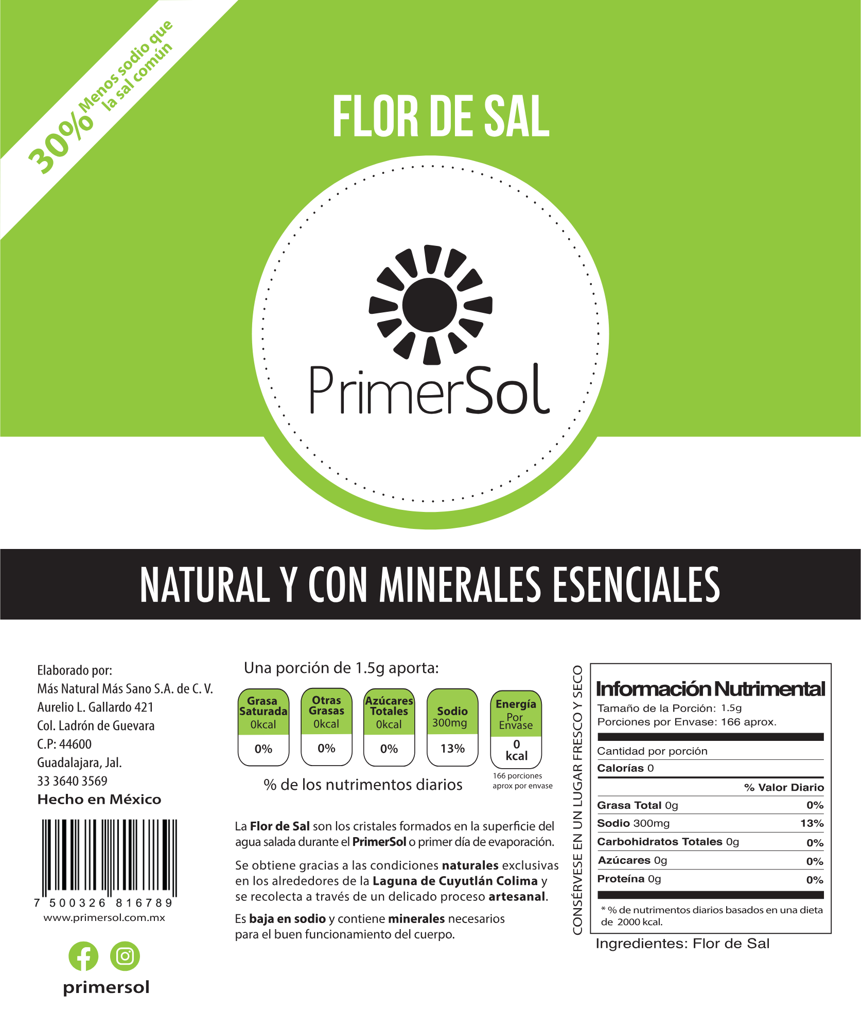 Es baja en sodio de forma natural y contiene minerales necesarios para el buen funcionamiento del cuerpo humano. Es la más fina de las sales y la ideal para cocinar al ser un insumo orgánico.