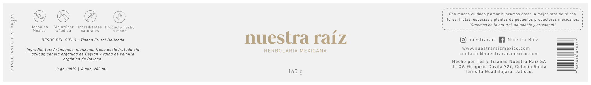 Tisana frutal sin teína, creada con ingredientes orgánicos donde predominan las notas de vainilla de Oaxaca, el dulzor de las fresas de Puebla y un toque de canela de ceylán de una finca cafetalera mexicana.